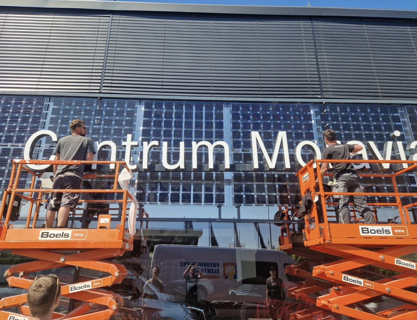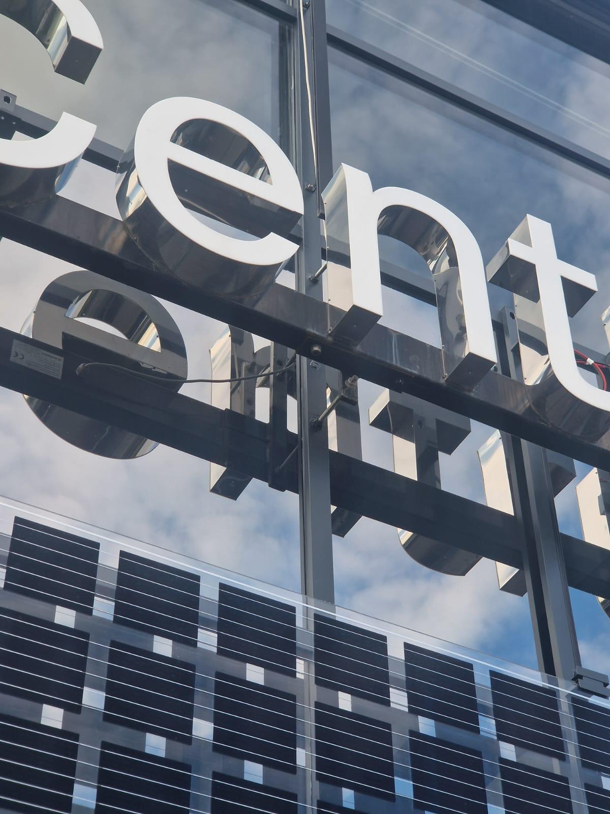 I myšlenka se zrodila! Nahradíme žaluzie FV panely, ty budou stínít a současně "krmit" nenasytnou klimatizaci, bez ní je "skleník" prodejny jako bez ruky.