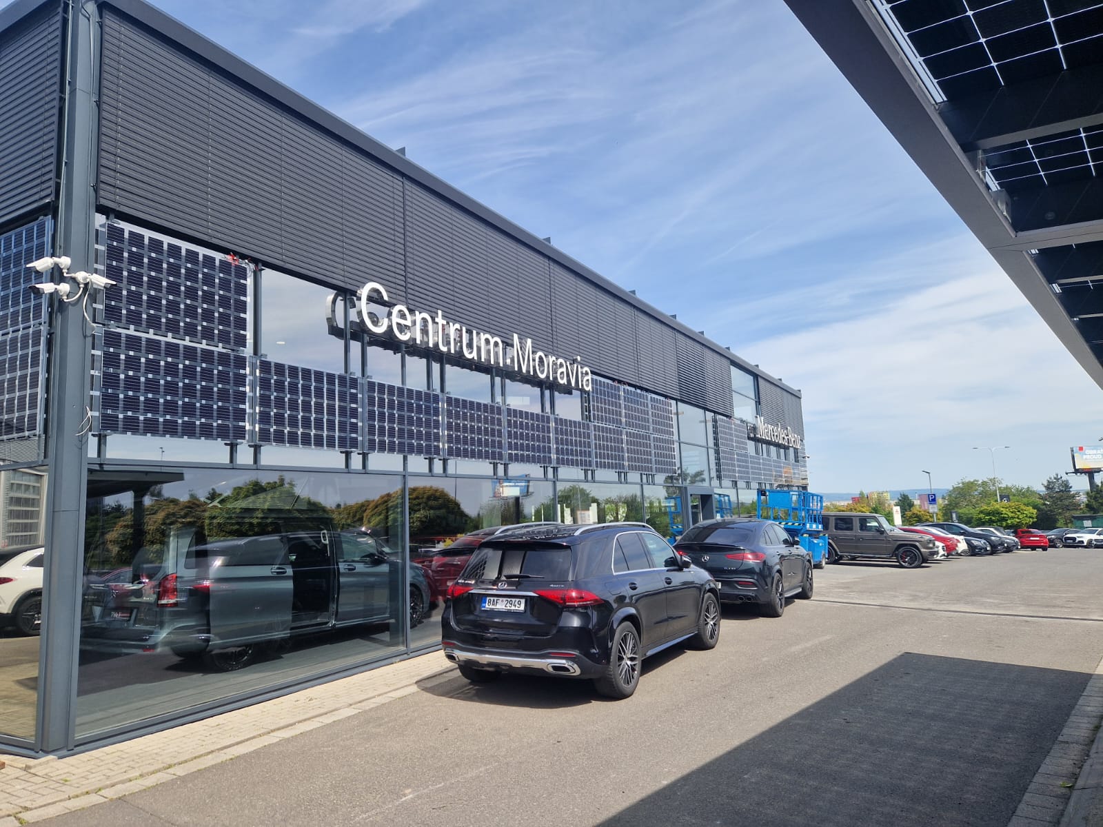 Po úspěšném úvodním testu technologie vyvstaly problémy s uchycením bezrámových panelů. Letité zkušenosti realizačního teamu ovšem problém přenesly ve výhodu a výsledek teď okukuje každý zájemce o nové auto Mercedes. Přijeďte na Horní Lán do Olomouce a okukujte také... klidně si můžete vybrat jak nové auto, tak naši firmu na montáž fotovoltaické elektrárny. Vězte, že každý projekt je výzva a té se nebojíme.