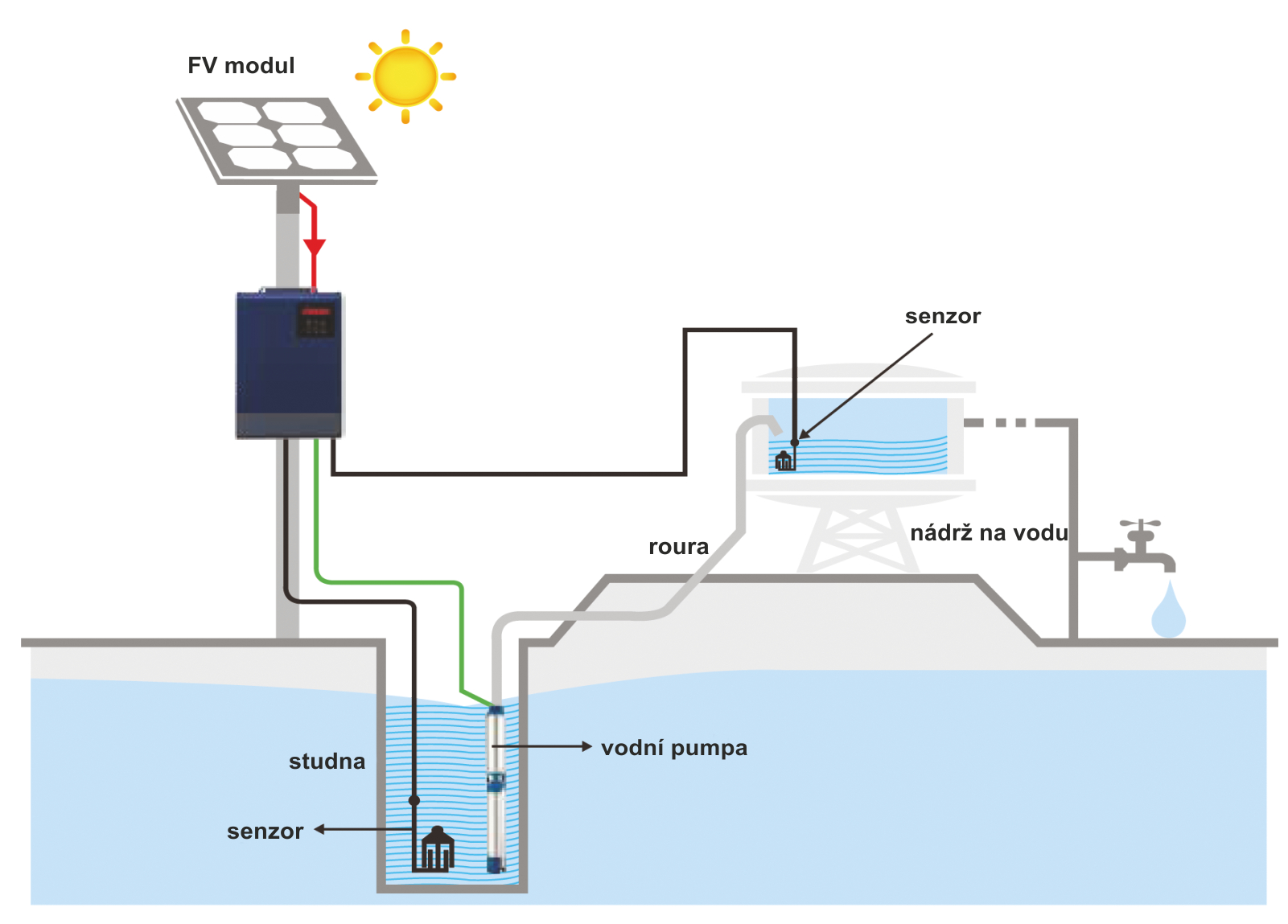 - funkce měkkého startu pro omezení rázů ve vodovodu a prodloužení životnosti systému