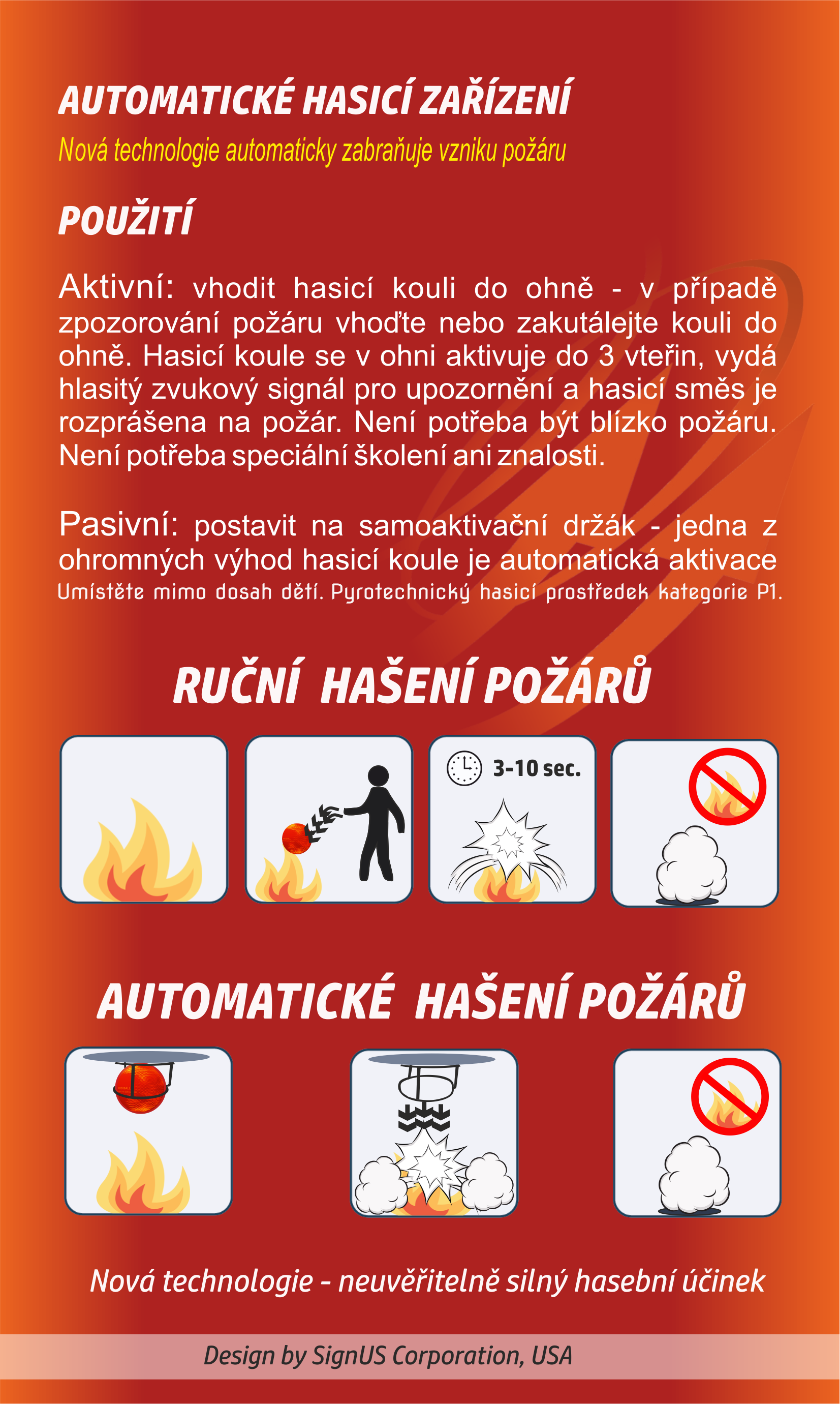 s designem firmy Signus Corporation USA je nejvyspělejším typem s dvojím použitím. Jednak jako automatické stabílní hasicí zařízení (instalací na stojanku a také jako ruční protředek hašení (vhozením do ohně). Při vzniku požáru a zahřátí ohněm dojde i v místnostech bez dozoru osob k mžikovému rozptylu a automaticky pokryje vrstvou hasicího prášku s vysokou účinností a uhasí požár stejně jako při vhození do ohniska požáru.
