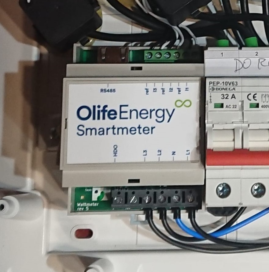 SmartMeter měří aktuální spotřeby objektu nebo jeho dílčího okruhu, vyhodnocuje dostupný příkon pro nabíjení EV a reguluje maximální nabíjecí proud stanice. Řídí jednu nabíjecí stanici OlifeEnergy (s jedním nebo dvěmi nabíjecími body). Jednotka se umísťuje do hlavního rozvaděče na DIN lištu. Proud je měřen nepřímo pomocí měřících transformátorů s děleným jádrem. Komunikace se stanicí probíhá po sériové lince pomocí sběrnice RS485 nebo pomocí bezdrátového modulu.